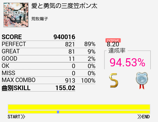 まただよ(笑)5回くらい粘着したけれどやるごとにパフェ率が落ちていくという。