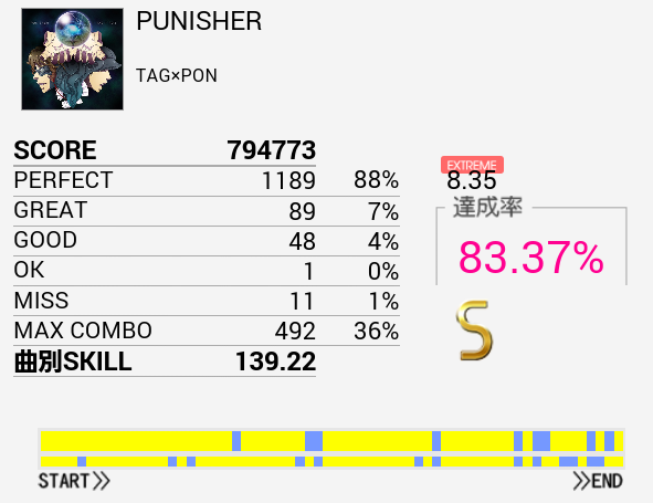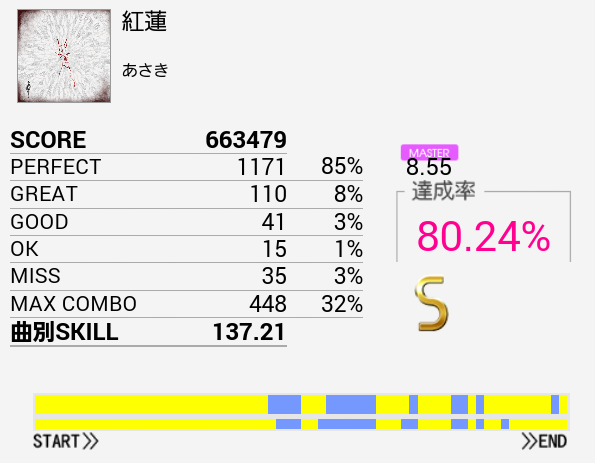 B判定→S判定。HH刻みのツーバスはなんとか繋げられた。