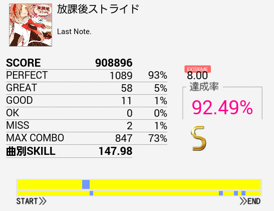 あとBメロのSNに気を取られて下手すると切るくらいパフェ率を落としている。