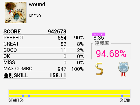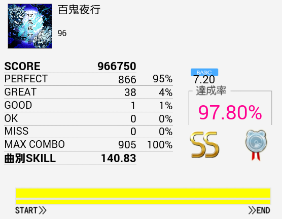 プレイし初めで足の動きが悪かったので準備運動がてら久々にプレイしたらSS取れた。