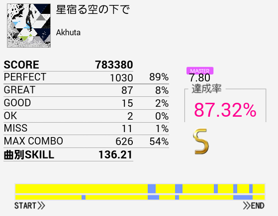何度も譜面を見て前半を覚えたのでSを取れた。