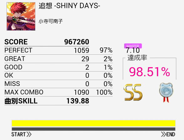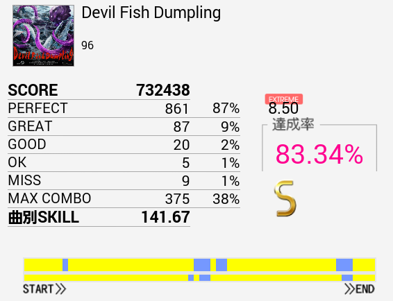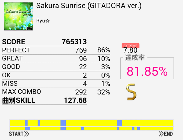 今日のSakura Sunrise。刻み譜面でこのパフェ率は。後半普通に左手が重いものな。