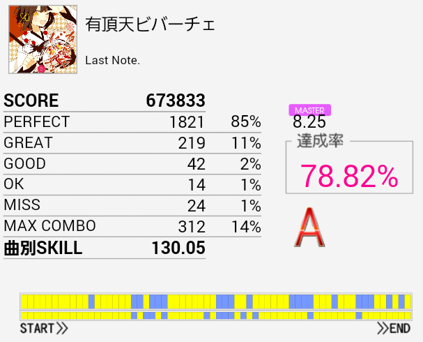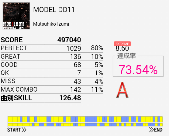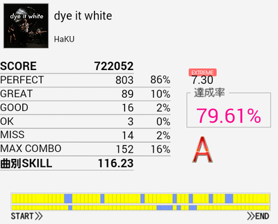 まさかのA判定!相変わらず苦手な譜面だ。SN→LT→FT×2の形は相変わらず反応できない。