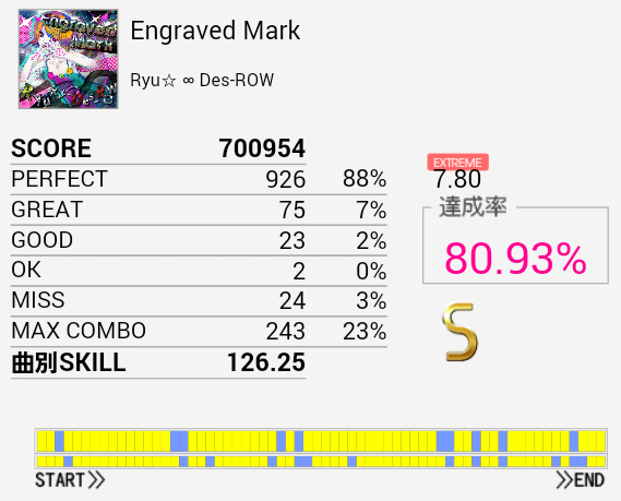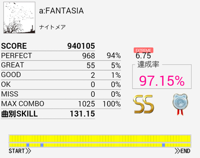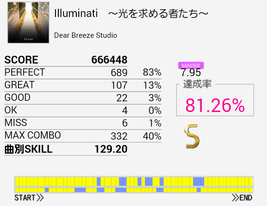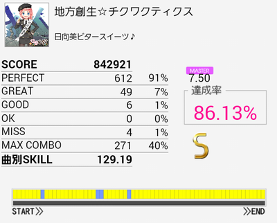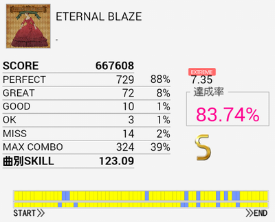 これもようやくS出た。ノーツが少ないのもあってパフェ率がひどい。