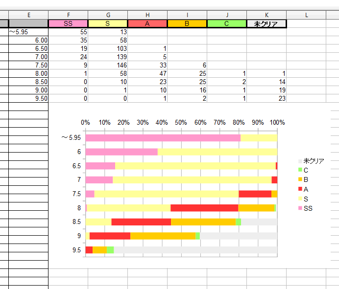 OpenOfficeでEXT以上の譜面(例外あり)のランクを手入力しているのだけれど、