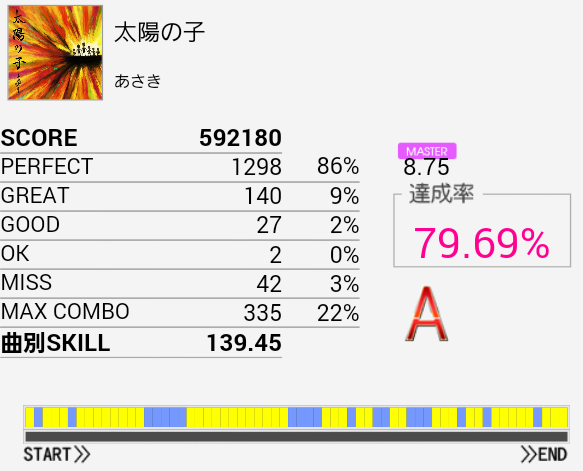 この曲全然叩けていない感覚だったのだけれど、MISS4つしかないじゃん。