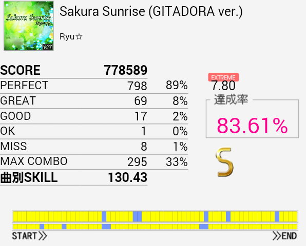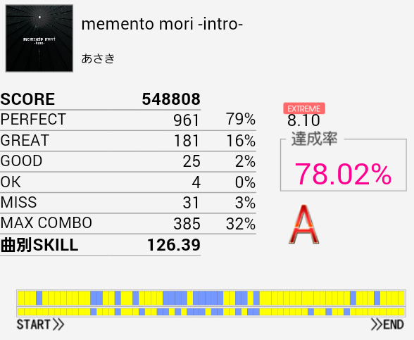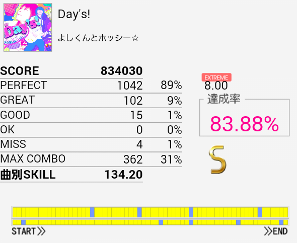 そのほか適当に8台らへんの伸ばしたい曲をプレイした。