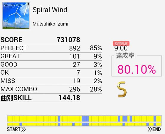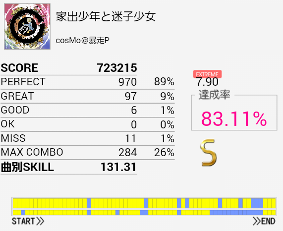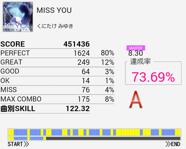 先日の記事を頭に入れつつプレイ。6回くらいやってMISS数はこれがベスト。