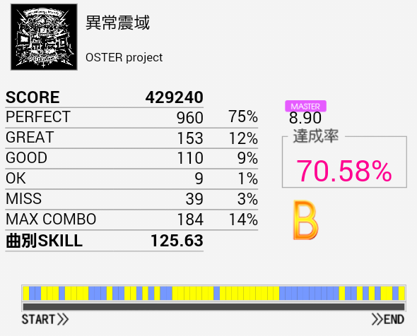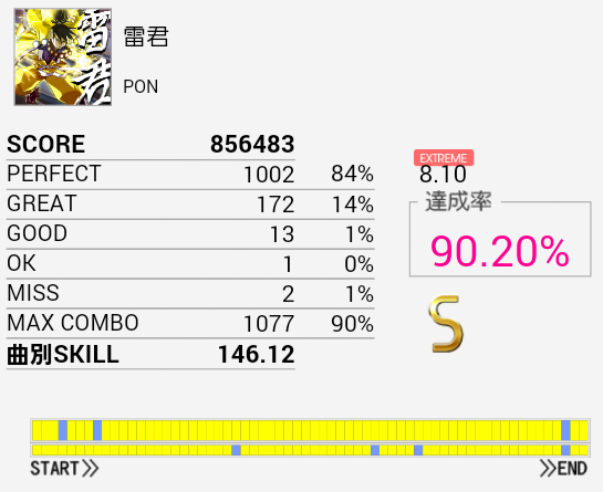 対象入りした(笑)足がキツくてコンボを繋ぐだけで精一杯だ。手は奇数混じりのタムとかがあるけれど案外繋がってくれるのよな。パフェ率を上げて150越したい。