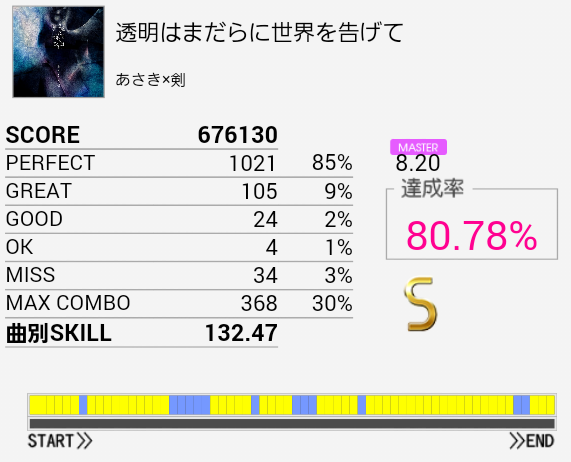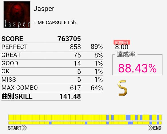 譜面を確認したのを全く活かせていないのがわかる。打ち損じが多すぎてクラッシャーになっていないかが心配。