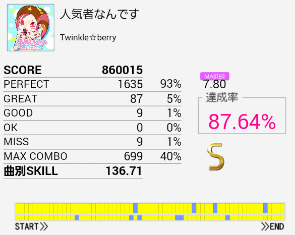 フルコンはできていないので選曲したけれど変なミスを連発して恥ずかしい。
