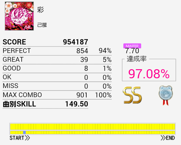 やっぱりCY×4をミスる。仮に繋がっていてもパフェ率が88%なのでSSは取れない模様。