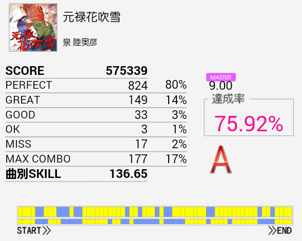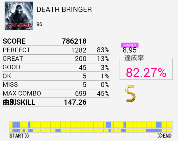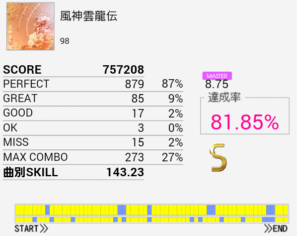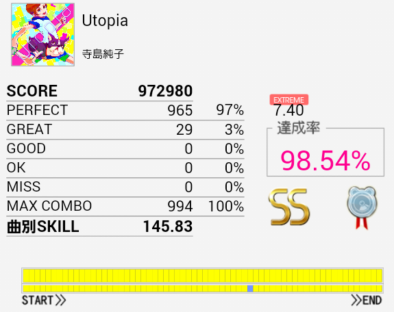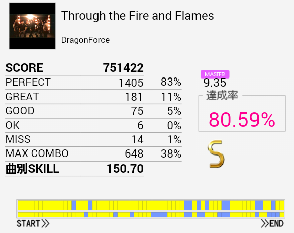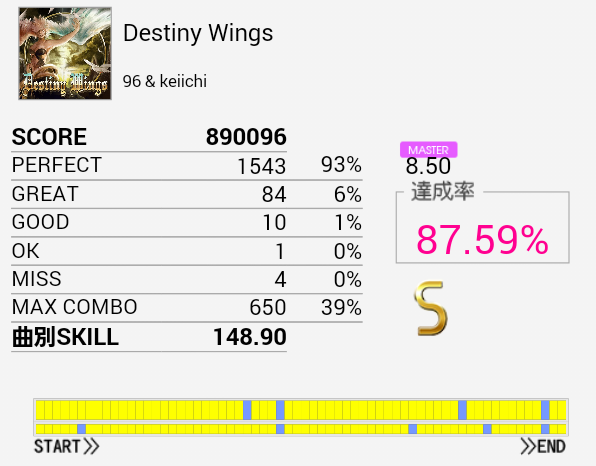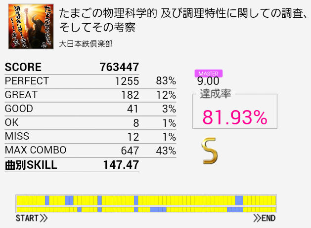 とりあえずS取得。手がどうにも。もうちょいパフェ率が上がればなあ。