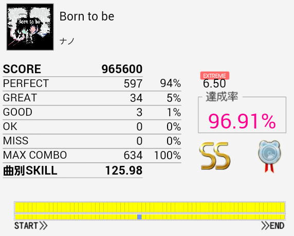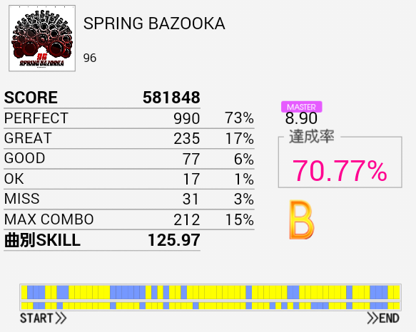 なぜかCY刻みでOKが出る。多重反応ってわけではないと思うのだけれど。この曲はSN×2→CY→SN×2→LCの部分でCYをスカるのを直したい。