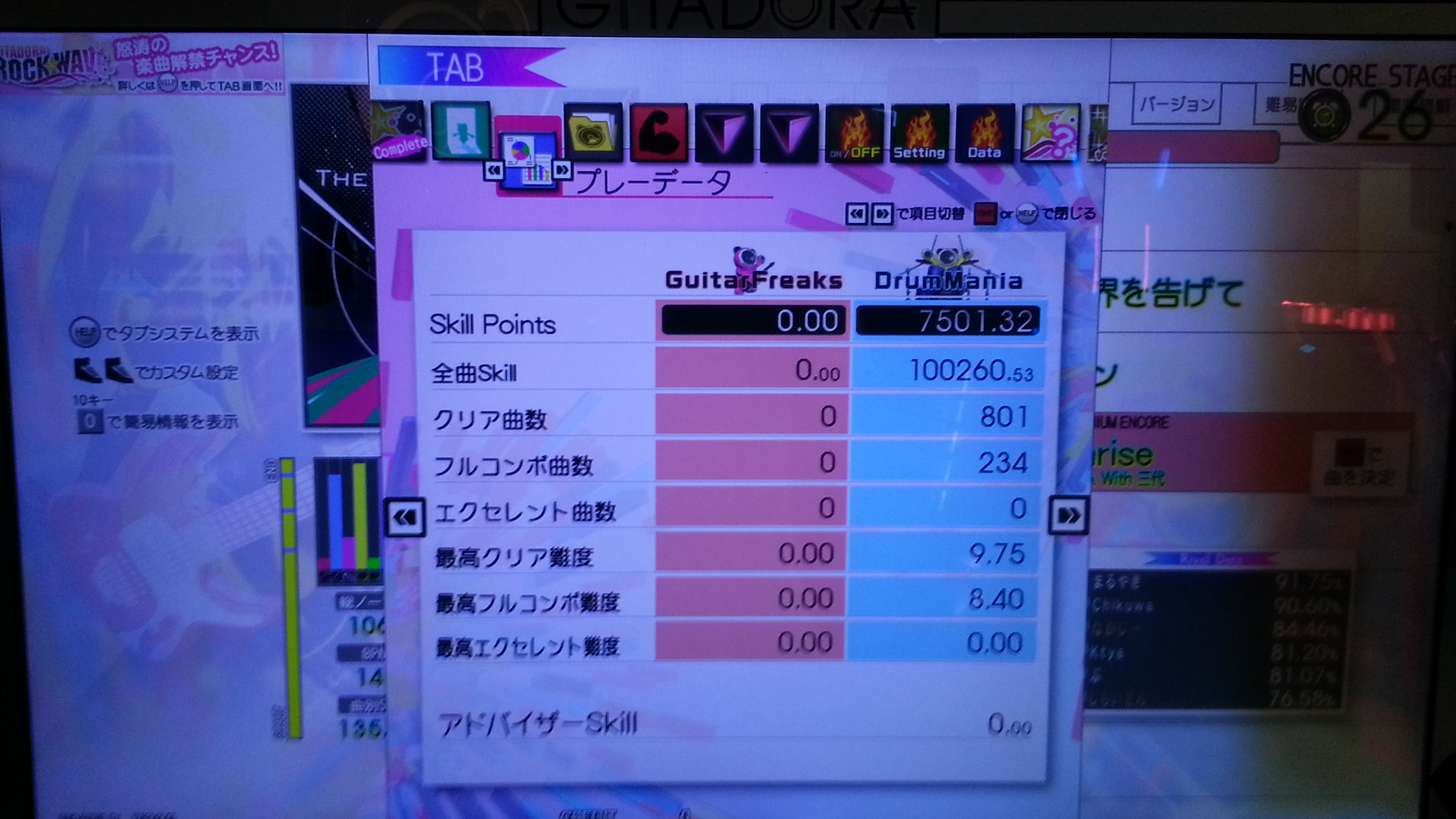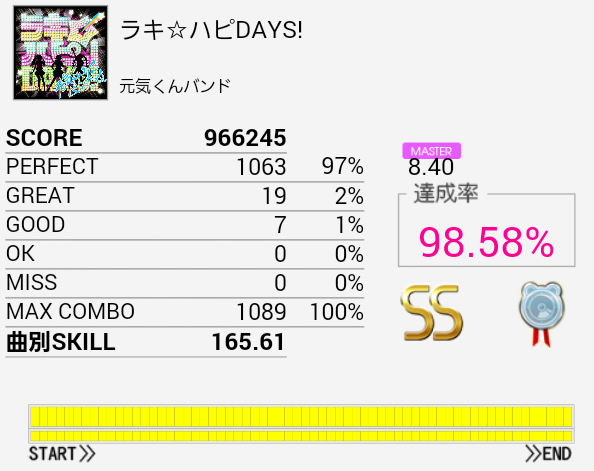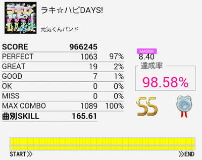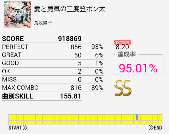 最初のタム回しをミスしてもそこ以外繋げばSS出そう……でどうでもいい部分で切った。ほんとプレッシャーに弱い。もうちょいパフェ率上げなきゃダメだな。