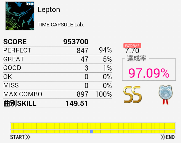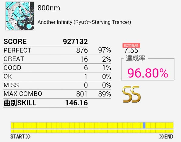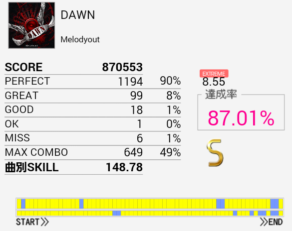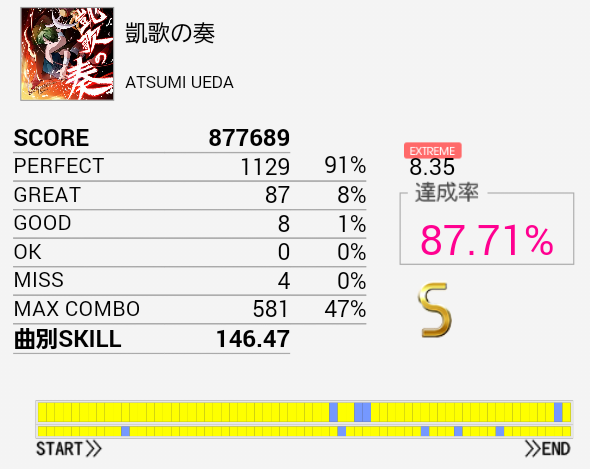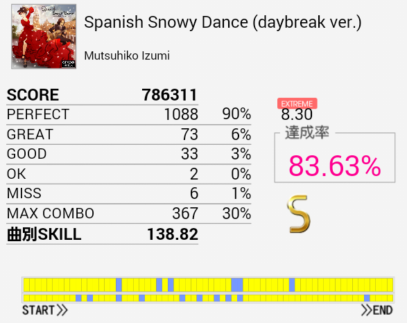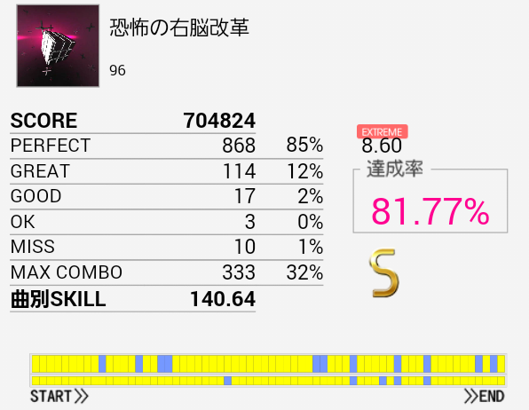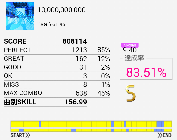 やっとS出せた!SN軸の振り回し部分が比較的うまくいったおかげだと思う。やっぱパフェ率大事だな。