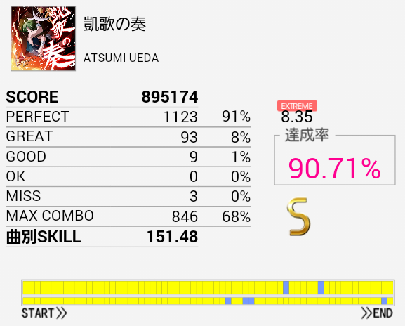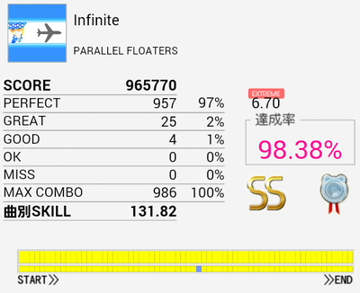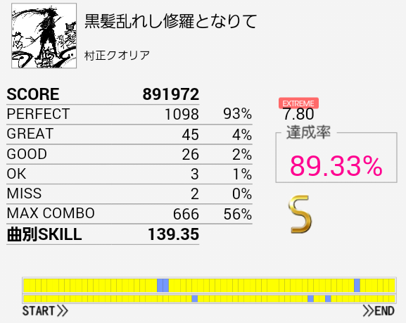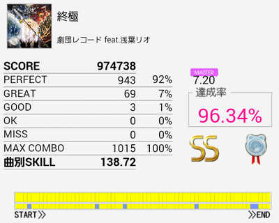 二回目で繋がった。初見はどこが7.20だと思ったけれど、来るのがわかっていれば案外捌けるな。このレベルでツーバスがけっこう長かったので適正では個人差が激しそうだ。