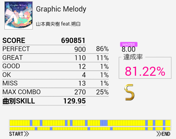 調子が悪くてP率80%台を連発したりした。HHが全然跳ねなくて叩き方のせいとは思うけれど筐体もおかしいんじゃないかと思う。きっと筐体がおかしい。