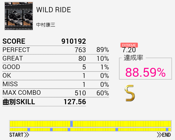 似たような譜面で似たようなパフェ率。こちらの方がちょっと楽か。この曲は後半がちょっとややこしいのだけれど。
