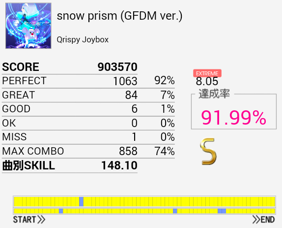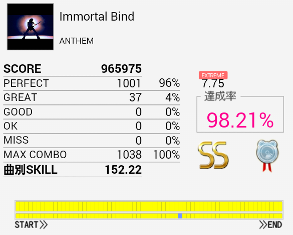 ようやく繋がった!というか対象入りするとは思わなかった。五連打がちゃんと叩けないことが多かったのだけれど腕をちゃんと上げることを意識したらなんとか。