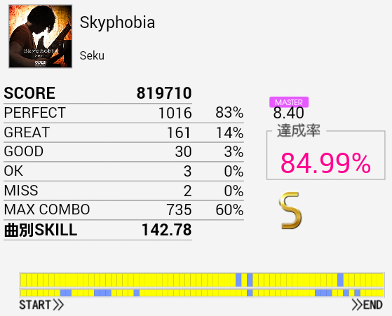 S取得。CYと足が絡むところは足が自信ないままけっこう繋がったりする。後半の足は8分裏バスの感じで踏むと上手くいく。タムの手順はわからん。