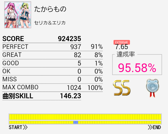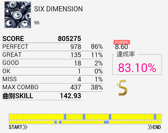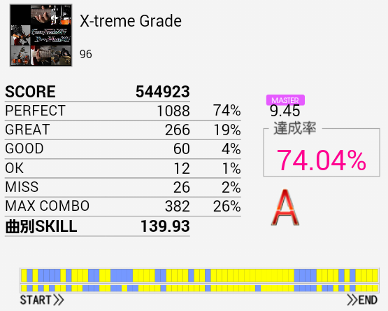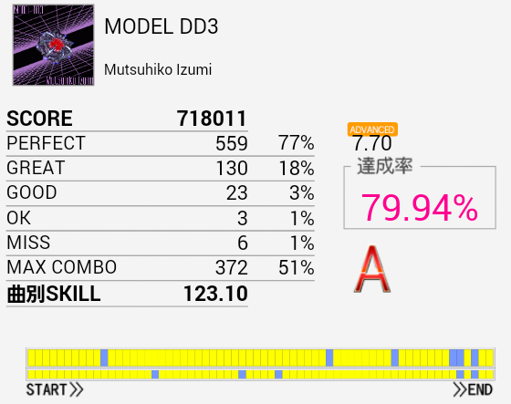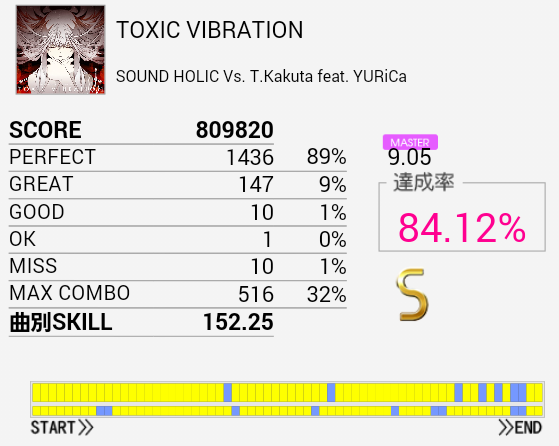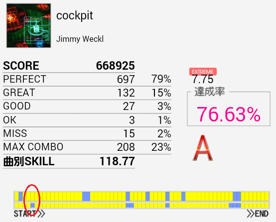 あああ序盤の連打さえ繋がっていれば。というかパフェ率が低すぎるのだよな。一回揃ってくれればすっきりEXTに移れるのに……。HT×3→LT×3がダブルだと安定しないしやっぱりシングルを練習すべきかな?(邪念)