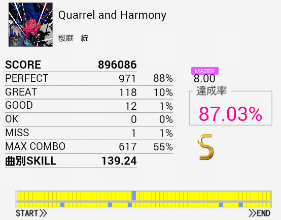 もともと譜面認識力がなくて特攻できないタイプなので8台前半を詰めることから逃げちゃいかんなあと思いました。