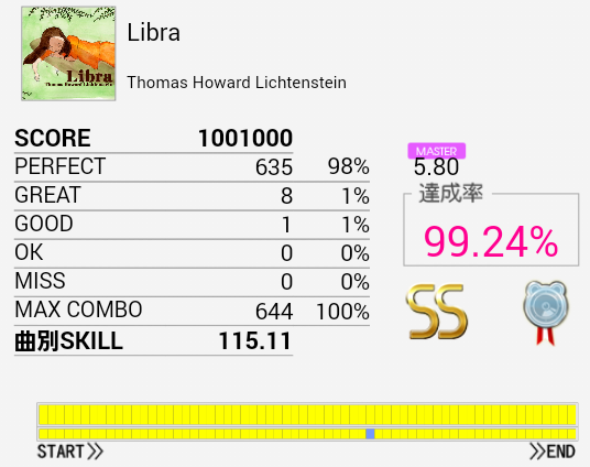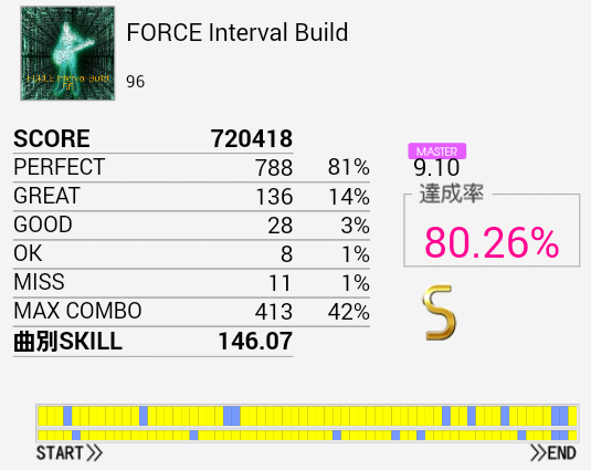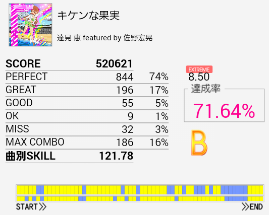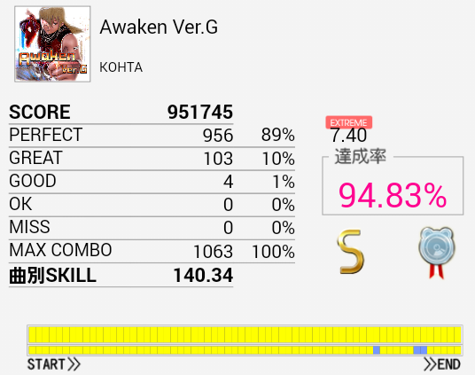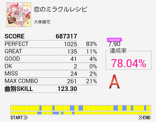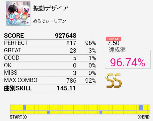ようやく繋がったと思ったらパフェ率が足りない。この曲も後半がまあ難しいよなー。