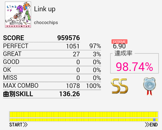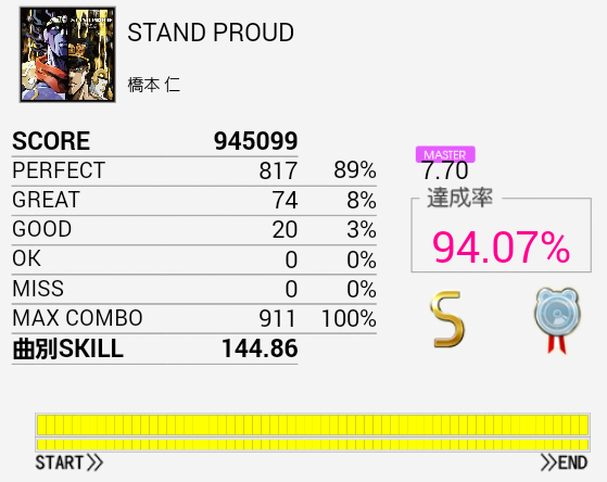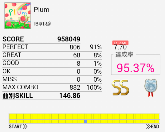 これもようやく繋げられた。いつもはP率93%くらいは出る(低い)のになあ、でもSS出たからよし。