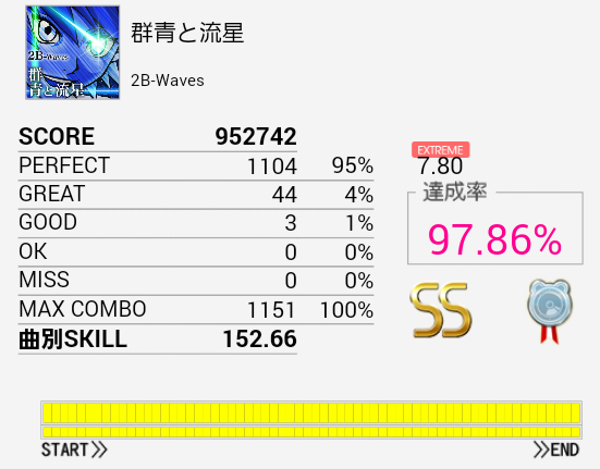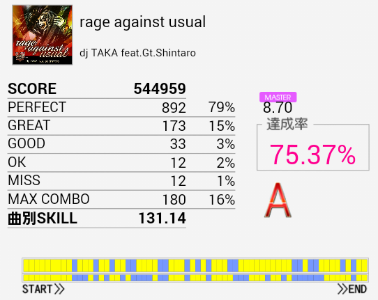 B判定→A判定。真ん中のクソ速HHを取れるようになればSは出そう。スキル的にはRe:EVOLVEになってもやる価値はなさそう。