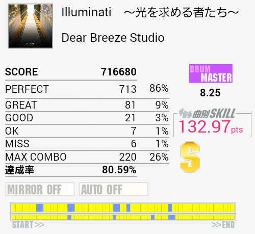 けっこう繋がることは繋がるけれどもパフェ率が残念なのでSKILL150以上はこの難度値でも望めなさそうだな。詰めだしたら嫌になりそう。