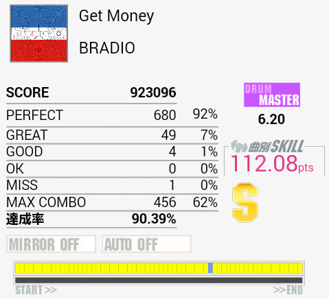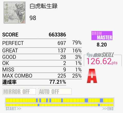 このくらい。前回のリザルトはパフェ率89%(高くはない)だぞ。どうやったら達成率も10%近く落とすんだ。