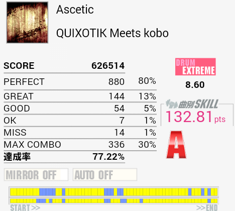 ライバルが続々とSS判定を出していておののく。やっぱりパフェ率低すぎるのだな……。