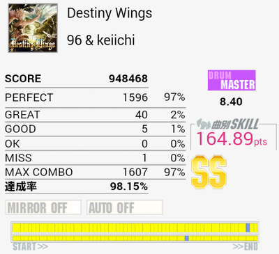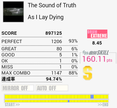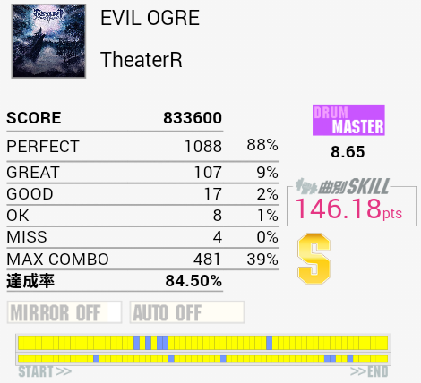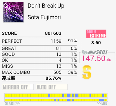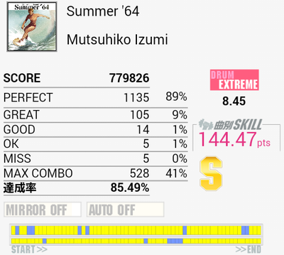 惜しい。三連符地帯でもうちょい合わせられていれば。まあ繋げって話だよな。