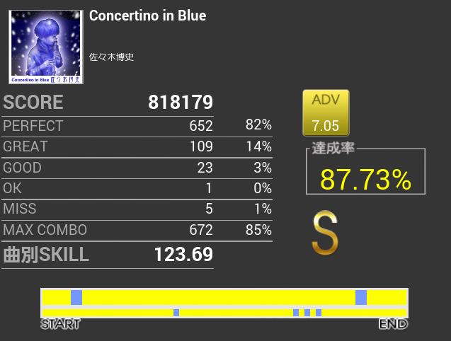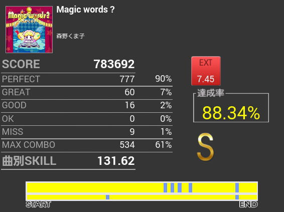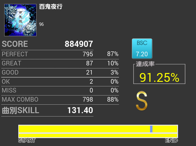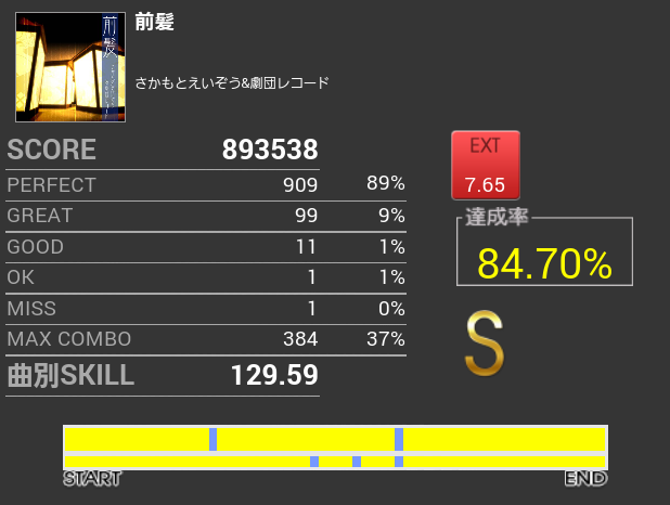 前半パフェ率も調子がよくてフルコンあるかと思ったけれど、一回ミスってグダグダになった。