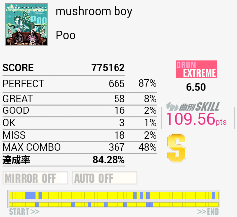 ちょい伸び。イントロ以外は繋がるのでちゃんと確認しようと思いました。