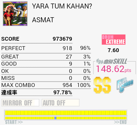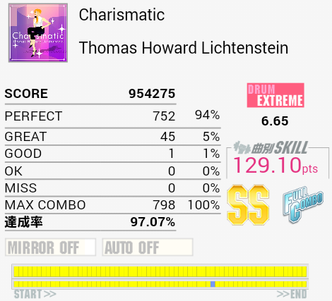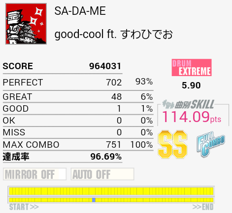 フルコン。ゴリ押し地帯までパフェ率100%だったので無駄に緊張した。