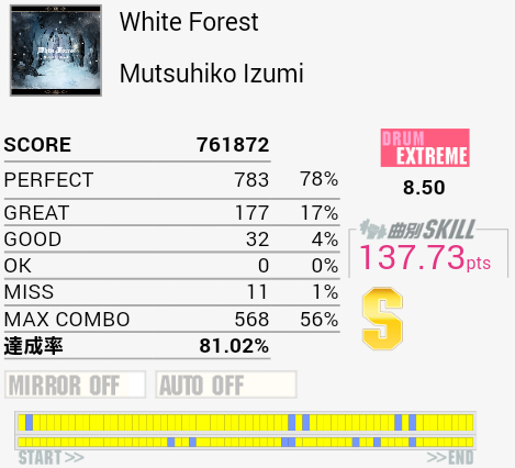 S取得。キツかった……。左手HHを高確率で打ち損じるので仮に手順を固めても伸ばすの厳しそう。それを練習するのか。