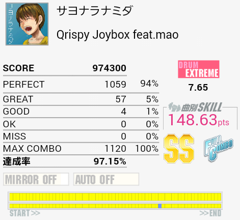 フルコン。最後の方ズレてパフェ率がガタ落ちした……。