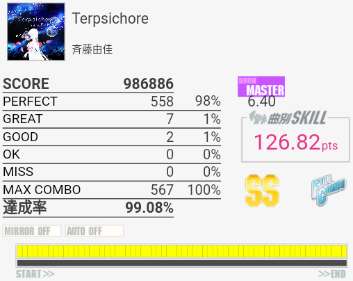 初見フルコン。5.40の間違いでは……?ちなみに読みは「テルプシコーレ」らしい。テレプシコーラって読んじゃう。
