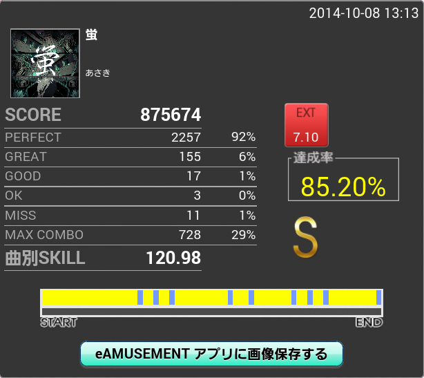 しかしこのパフェ率だと繋がっても90%くらいしか行かないような……序盤と終盤でしっかり合わせるよう意識しなければ。