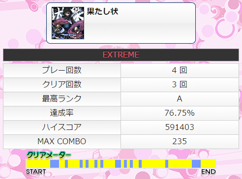 譜面動画で見返してみると案外単純なのでちょいちょい挑戦してみるか。