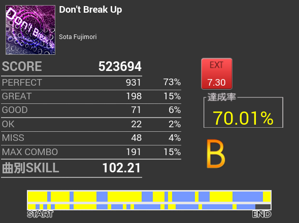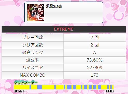 果たし状と似た感じの譜面で左足が絡む部分が果たし状より複雑か。けっこうズレてしまう。