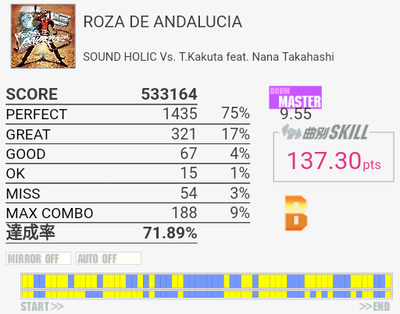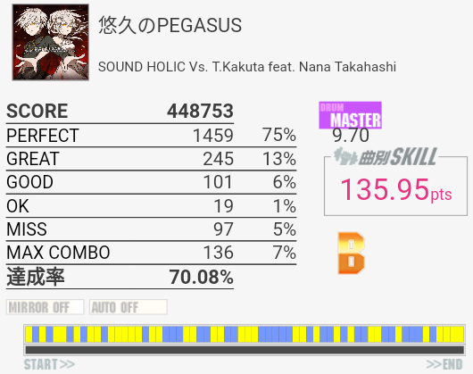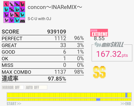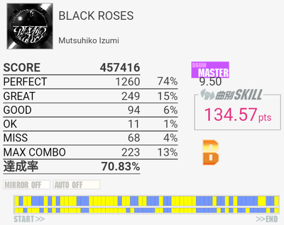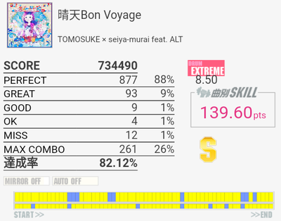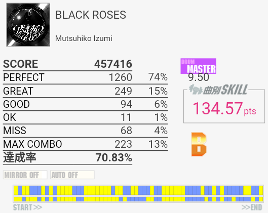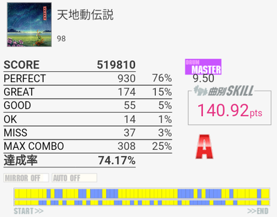 B判定→A判定。ゴリ押し部分はともかく、三連CYらへんは叩けるようになりたいなあ。