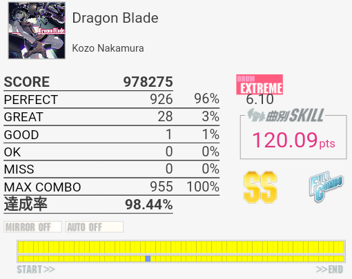 久々にやってみたけれど特に上手くなっているわけでもなく。左入りの部分はEXTと同じだけれど手が全然動かないもんな。