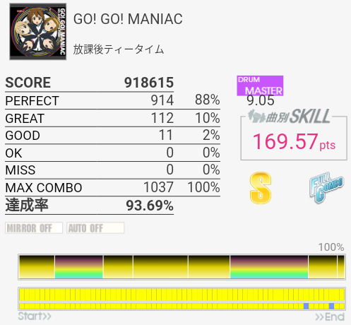 クリア埋めでプレイ。三連シンバルがほとんどそのままなので練習にいいかなーと。MASやりゃいいじゃんというのはその通り。