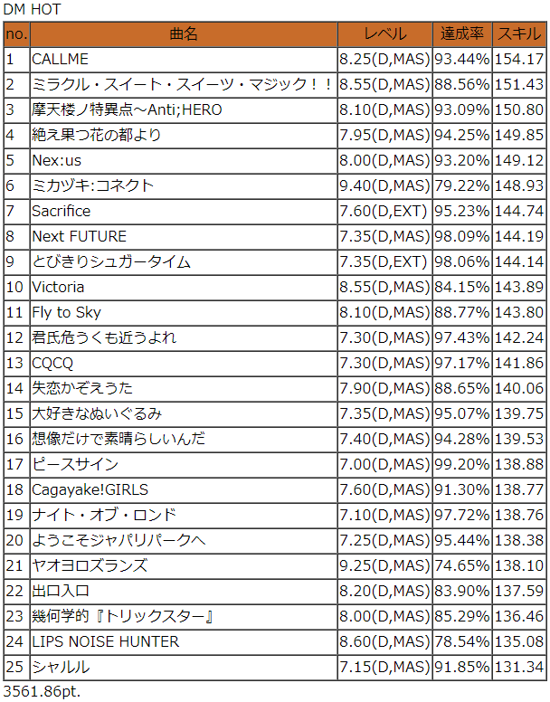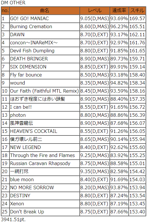 遅ればせながら銀ネームに復帰できました。前作金ネームのライバルは軒並みOther枠下限160とかなので、まず前作フルコンしていた曲は戻さないとなあ。