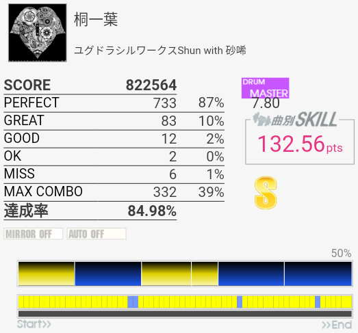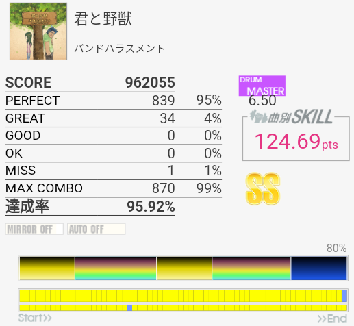 SS取得。BPでGREATが出まくった。ラストの三連符は苦手。