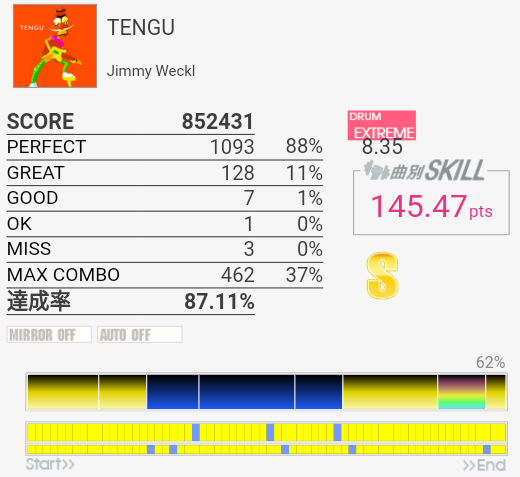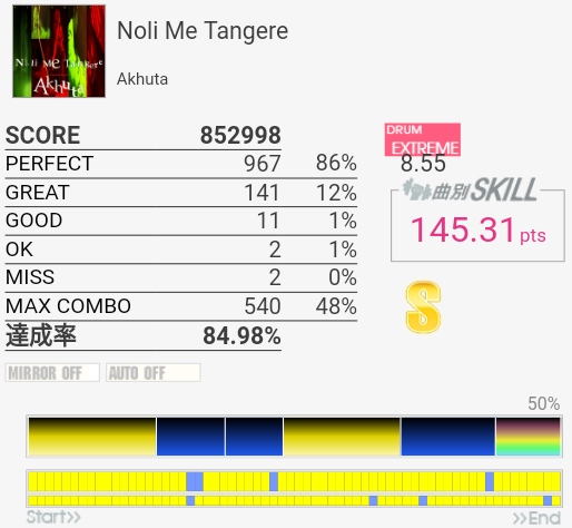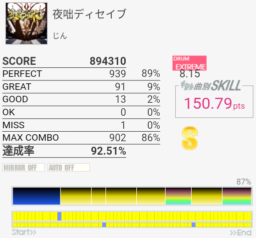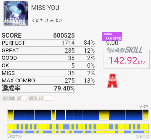 ロング曲のミスユーですが、まるやきさんのブログみてやりました。これ頑張ればスキルはいりますね。ロングは集中力を欠くのでやりこむのはあとですが。