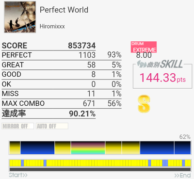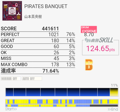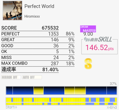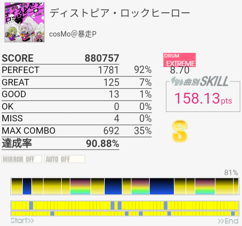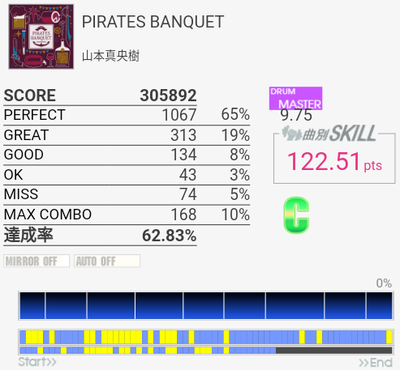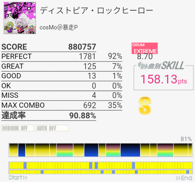 速い連打がだいたい繋がって対象入り。というかどうでもいいところで切りすぎる。これとMASCARADA、MISS YOUはまだ対象に入れられそうなのでちょくちょく触っていきたい。